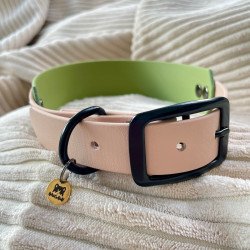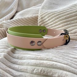 Vous aimez les couleurs qui sortent de l’ordinaire ? Ce collier double en Biothane allie l’élégance du vert avocat et la douceur du rose poudré pour un look unique et tendance ! 🌟